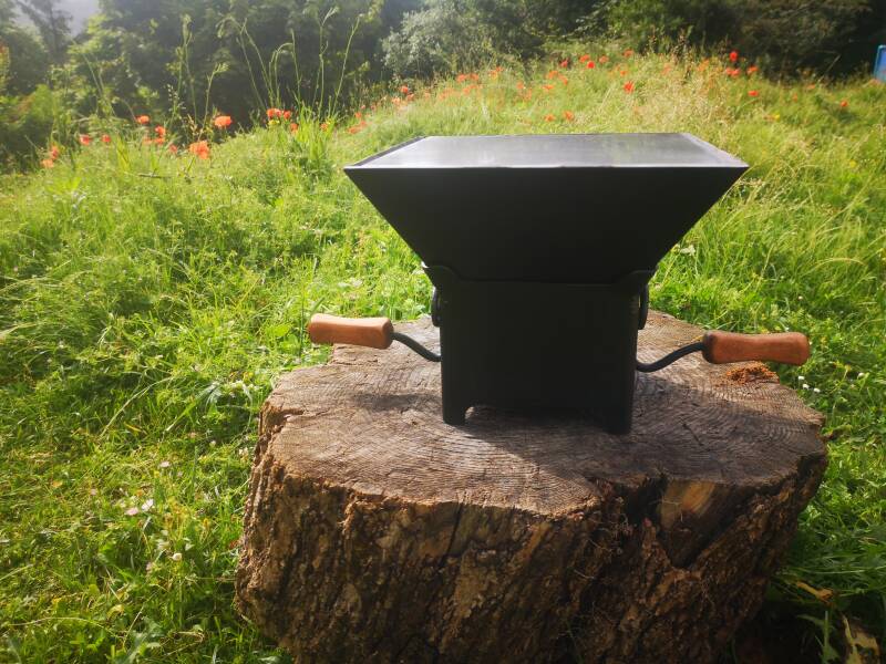 Braséro de voyage. Facile à ranger et à transporter. Rapidement mis en place et redémonté.